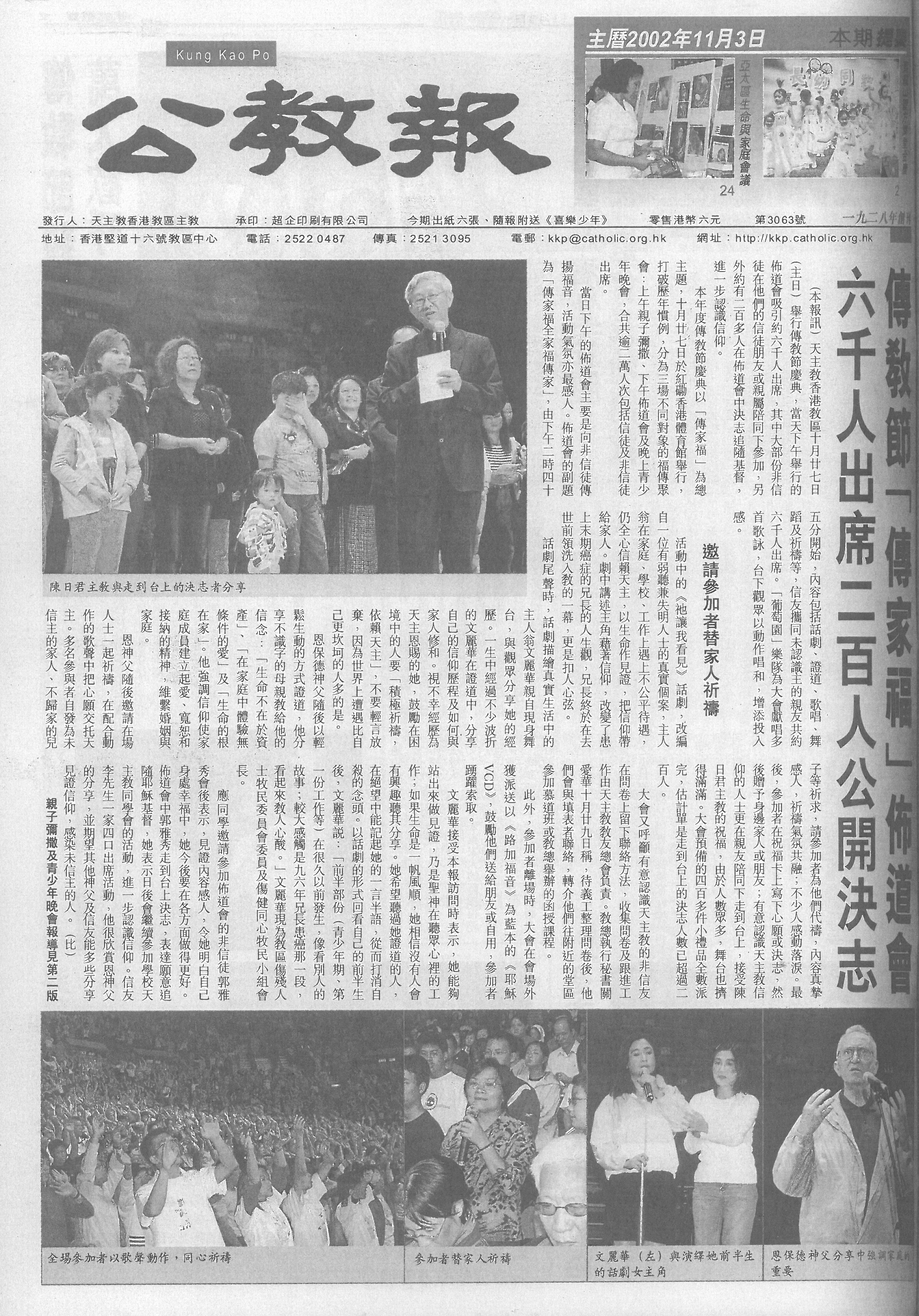 傳教節2002:傳教節「傳家福」佈道會 六千人出席二百人公開決志