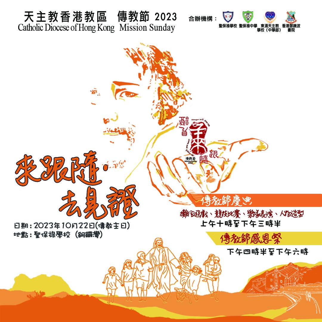 【#傳教節2023 傳教節慶典】日期:10月22日(傳教主日) 地點:聖保祿學校(銅鑼灣)-傳教節慶典- 時間:10:00am-03:30pm ⭐傳教節慶典開幕禮(10:00am) ⭐聖人catwalk show人物造型比賽(10:30am-12:30pm) ⭐攀山涉水傳教路競技比賽(12:30pm開始) ⭐音樂福傳及信仰分享(02:00pm開始) ⭐攤位活動(10:00am-03:30pm)-⭐傳教節感恩祭⭐- 時間:04:30pm-06:00pm |